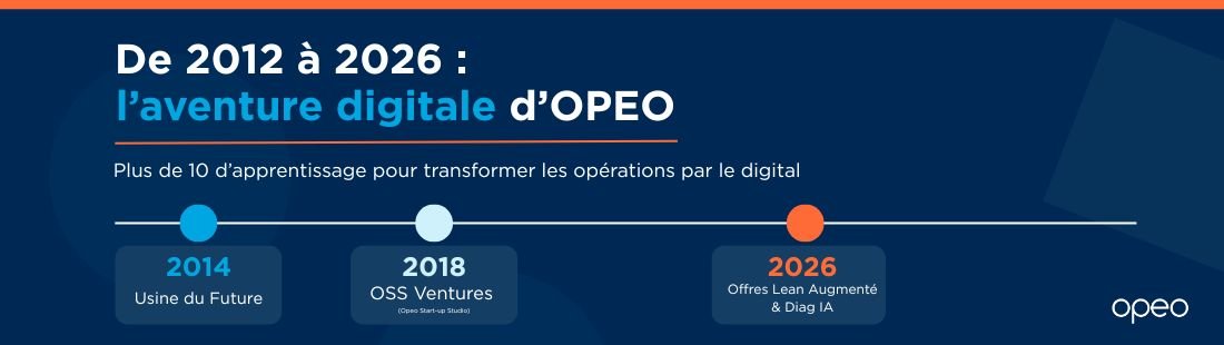 En 2012, OPEO est né de la rencontre d'opérationnels de l'industrie (PME et groupes), passés par McKinsey & Cie. En 2014, OPEO démarre une conviction qui, à l’époque, est encore émergente dans l’industrie : le digital ne doit pas être un sujet à part, mais un levier de transformation des opérations. Nous franchissons le pas avec les programmes Industrie du Futur Grand Est, où encore Usine du Futur en Nouvelle-Aquitaine.