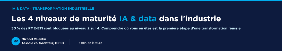 Lors de notre intervention en conférence plénière à Global Industrie, un chiffre a retenu l'attention de la salle : 50 % des PME-ETI industrielles françaises sont encore bloquées au niveau 2 sur 4 de leur maturité data et IA.